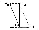 (2) 要使小船垂直过河,小船的合速度应垂直河岸,如图所示,则渡河时间 |
