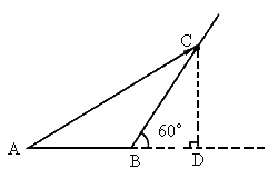 如图所示,某同学沿平直路面由A点出发前进了100m到达斜坡底端的B点,又沿倾角为60°的斜坡上行100m到达C点,求此同学的位移和路程.