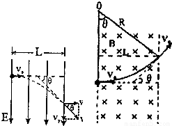 如图所示匀强电场分布在宽度为L的区域内,一个正离子以初速度v垂直于电场方向射入场强为E的匀强电场中,穿出电场区域时偏转角为θ.在同样的宽度范围内,若改用方向垂直于纸面向里的匀强磁场,使该离子穿过磁场区域时偏转角也为θ,求:(离子重力忽略不计)(1)正离子的电荷量q与其质量m的比值;