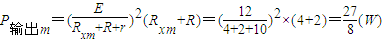 当Rx为最大值时,Ux2=3v,对应电流为I2=0.75A,由闭合电路欧姆定律得:
