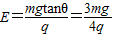 得:qE=mgtanθ,解得: