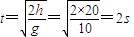 此时速度v=gt=20m/s;