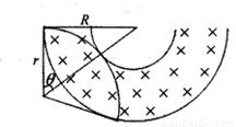 (2)粒子在磁场中在洛伦兹力作用下,做匀速圆周运动,结合几何知识,可确定运动轨迹的半径及夹角.从而再由半径公式可算出刚好不能进入