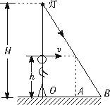 所以OB= 所以人头影的速度v= 因为H、h、v都是确定的,故v亦是确定的.即人头影的运动应是匀速直线运动. |