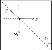 根据三力平衡特点,F与G1的合力必沿斜面向下,同时摩擦力f 只能沿斜面向上,故选项A对BC错;根据几何关系,F与G1的合力F合=