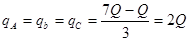 反复多次接触,最终三个小球带电量相等,即