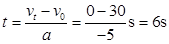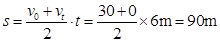 (3)因为汽车制动6s就停下了,所以汽车制动8s内的位移等于汽车制动6s内的位移,为90m。 (2分)
