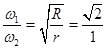 如图所示,水平放置的两个用相同材料制成的轮P和Q靠摩擦传动,两轮的半径R∶r=2∶1。当主动轮Q匀速转动时,在Q轮边缘上放置的小木块恰能相对静止在Q轮边缘上,此时Q轮转动的角速度为ω1,木块的向心加速度为a1;若改变转速,把小木块放在P轮边缘也恰能静止,此时Q轮转动的角速度为ω2,木块的向心加速度为a2,则![]()