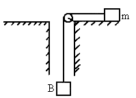 如图所示,在空心轴的转台上旅转一物块m,用绳的一端系住m,绳的另一端穿过空心轴而吊一重物B.当转台以角速度ω转动时(设物体始终与转台同步旋转),它的旋转半径为r,若一切摩擦不计,下面的叙述中正确的是