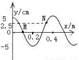 【答案】分析:由质点M的振动情况,确定波的周期,再由波速公式求出波速.质点在一个周期内通过的路程是4A,由t3=1.2s,分析质点N振动了几个周期,确定路程和相对于平衡位置的位移.