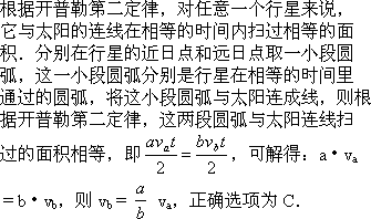 某行星沿椭圆轨道运行,远日点离太阳的距离为a,近日点离太阳的距离为b,过远日点时行星的速率为va,则过近日点时行星的速率vb为( )