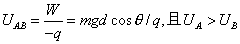 答案:mgdcosθ/q 质点只受重力和电场力都在竖直方向上;质点沿直线AB运动,表明重力和电场力平衡,质点运动是匀速的。重力势能的减小等于电势能的增加。电势差