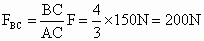 如图所示,在三角形支架B点用一个细绳挂一个重为150N的重物G.已知AB∶BC∶AC=5∶4∶3,求横梁BC和斜梁AB所受的力.