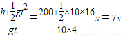 【答案】分析:对整个过程和除去最后200m的整个过程运用自由落体运动的位移时间关系公式列式后联立求解.