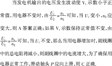 V1示数保持正常值不变,那么当用电器增加时,滑动触头P应向上滑D.