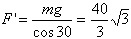 如图所示,物体A质量m=2kg,用两根轻绳B,C连接于竖直墙上.在物体A上加一恒力F, 若图中夹角θ=60°,CA绳与墙壁垂直。要使两绳都能绷直, 即使物体A 在如图所示的位置保持平衡,求恒力F的大小。(取g=10m/s2)![]()