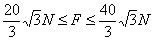 | 如图所示:F 最小时 , AC 绳无拉力 , AB 绳拉力大小等于F , F 最大时,AB 绳无拉力, ∴