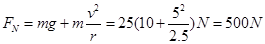 质量为25kg的小孩坐在秋千板上,小孩离系绳子的横梁2.5m。如果秋千板摆到最低点时,小孩运动速度的大小是5m/s,它对秋千板的压力为( )