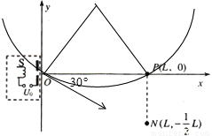 (2)只有电场时,粒子在电场中做类平抛运动,水平方向匀速:L=vt