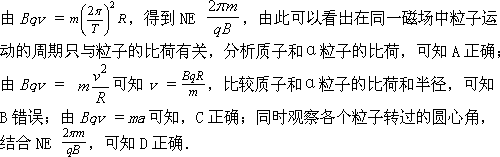如图所示,在一匀强磁场中有三个带电粒子,其中1和2为质子、3为α粒子.它们在同一平面内沿逆时针方向做匀速圆周运动,三者轨道半径r1>r2>r3,并相切于P点.设T、v、a、t分别表示它们做圆周运动的周期、线速度、向心加速度以及各自从经过P点算起到第一次通过图中虚线MN所经历的时间,则
