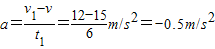 解答:解:以火车运动的方向为正方向,v=54km/h=15m/s;v1=43.2km/h=12m/s