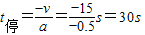 (2)15s末的速度v2=v+at2=15+(-0.5)×15m/s=7.5m/s,方向沿与火车运动的方向