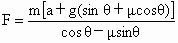 将 A所受各力沿斜面方向和垂直斜面方向正交分解,可得沿斜面方向有:Fcosθ-f-mgsinθ=ma;垂直斜面方向有: N=mgcosθ+Fsinθ,又f=μN,所以受力分析→正交分解→应用牛顿第二定律是解决该类问题的一般步骤. |