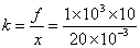 压力为1t时,弹簧压缩20mm,根据胡克定律,有