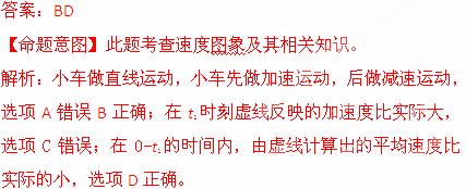 (2013广东汕头市期末)如图,实线记录了一次实验中得到的运动小车的 v- t图象,为了简化计算,用虚线作近似处理,下列表述正确的是
