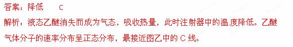 度 (“升高”、“降低”或“不变”),乙醚气体分子的速率分布情况最接近图乙中的 线( “A”、“ B”、“C”)。图中