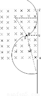 (2)粒子打在O点上方的最高点时,轨迹与光屏相切.在O点下方的最低点与放射源的连线等于直径,轨迹如图.