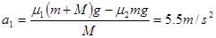 因μ1>μ2, 以后木块相对箱滑动,木块加速度a2=μ2g=2.5m/s2
