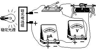 小明同学为了测定某太阳能硅光电池组的电动势和内电阻,设计了如图甲所示的电路,在一定光照条件下进行实验: