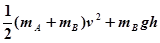(10分)如图所示,在粗糙的水平桌面的边角处有一轻质光滑的定滑轮K,一条不可伸长的轻绳绕过K分别与物块A、B相连,A、B的质量分别为mA、mB ,开始时系统处于静止状态。现用一水平恒力F拉物块A,使物块B上升。已知当B上升距离为h时,B的速度为v ,重力加速度为g。求: