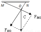 【答案】分析:将拉重物的绳子OC上的拉力按作用效果分解,沿N0方向上的分力等于NO绳的拉力,沿MO绳方向上的分力等于MO绳的拉力,比较两拉力的大小,从而判断哪根绳先断.