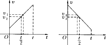 (解法二)画出匀加速和匀减速直线运动时的v-t图象,如图所示,可很直观看出总有v1>v2 |