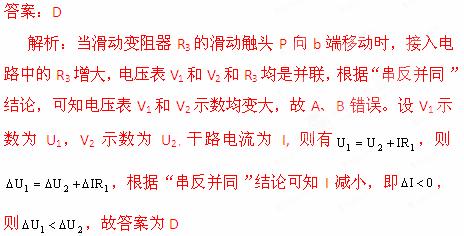 (2013年安徽省合肥市一模)如图所示的电路中,电压表都看做理想电表,电源内阻为r。闭合电键S,当把滑动变阻器