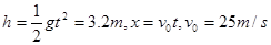 【解析】在最高点时竖直速度为零,所以之后做平抛运动,![]()