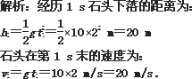 一名攀岩运动员在登上陡峭的峰顶时不小心碰落一块石头,石头做自由落体运动,设山峰足够高,则经历2 s,它落下多少距离?第2 s末的速度多大?(g取10 m/s2)