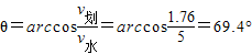(2)假设河水流速为5m/s,该同学已经比较疲劳,他最小的划行速度是1.76m/s才能使自己不掉到瀑布下面,这时小艇的划行方向与河岸所夹的锐角是69.4°.