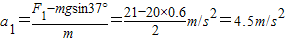 a2=gsin37°=6m/s2,方向沿斜面向下