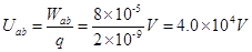 一个带正电的质点, 电荷量q=2.0´10-9C,在静电场中由a点移到b点, 在这过程中, 只有静电力做功, 质点动能增加了8.0´10-5J, 则a、b两点间电势差Uab为( )