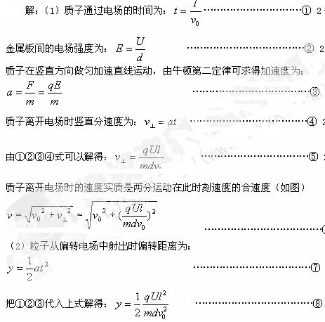 如图所示,在真空中水平放置一对平行金属板,板间距离为d,板长为l,加电压U后,板间产生一匀强电场,一质子(质量为m,电量为q)以初速v0垂直电场方向射入匀强电场,