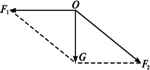 OC下悬挂重物,它的拉力应等于重物的重力G.就是OC绳的拉力产生两个效果,使OB在O点受到向左的作用力F1,使OA在O点受到斜向下沿绳长方向的作用力F2,F1、F2是G的两个分力.由平行四边形可作出力的分解图如下图所示,当逐渐增大所挂物体的质量,哪根绳子承受的拉力最大则最先断.从图中可知:表示F2的有向线段最长,F2分力最大,故OA绳子最先断.