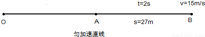 一辆汽车从静止开始做匀加速直线运动,已知途中经过相距27m的A、B两点所用时间为2s,汽车经过B点时的速度为15m/s.求:(1)汽车经过A点时的速度大小;(2)A点与出发点间的距离;