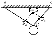 绳子OA对球的拉力和绳子OB对球的拉力的合力F与重力G大小相等方向相反.如图所示,因为OB承受的力大,故OB先断.