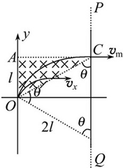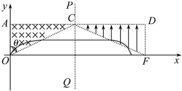 (1)求能通过PQ界面的电子所具有的最大速度及其从O点入射时与y轴的夹角;
