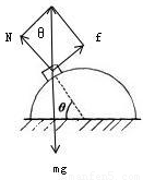 物体受到的摩擦力沿切线方向,沿切线方向重力的分力与摩擦力大小相等,即:f=mgcosθ,故D错误,C正确。