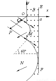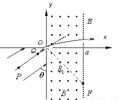 从P发出的粒子第一次从y轴上N点射出,由几何关系知轨道正好与EF相切,N点的纵坐标