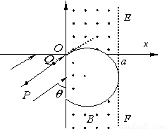 粒子在磁场中运动轨迹与边界EF相切,由几何关系知?